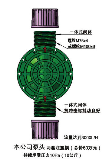 ![]() | 本公司的計(jì)量泵使用的是一體式泵頭。生產(chǎn)工藝是開(kāi)制塑料模具,然后使用模具生產(chǎn)泵頭。整個(gè)泵頭是一體式結(jié)構(gòu)。外至螺紋為考慮強(qiáng)度,螺紋可無(wú)限放大,泵頭注塑??刹捎锰土戏绞?,增加的成本并不會(huì)太多。這樣,泵頭所承受的壓力可以達(dá)到很高。而且泵頭非常結(jié)實(shí),強(qiáng)度是普通泵頭的兩倍以上。不會(huì)發(fā)生斷裂滲漏的情況,大大增加了計(jì)量泵的使用壽命。 |
